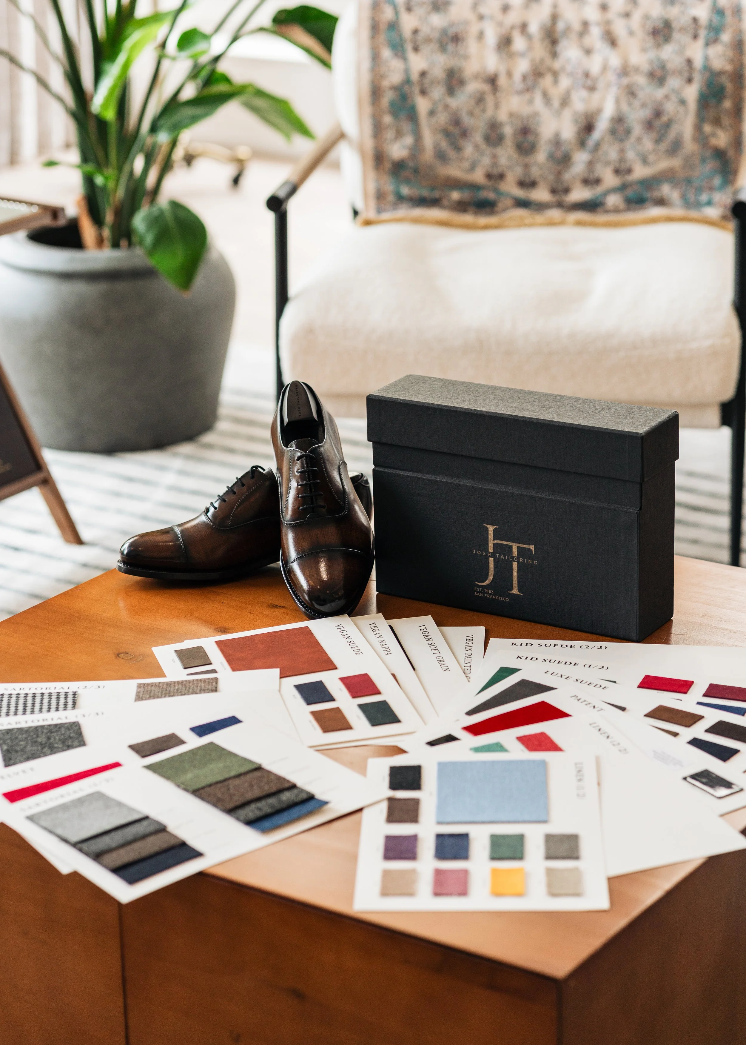For your first appointment, we'll meet you at our show room in Union Square, 275 Post, San Francisco to measure and pick out all the options, from the supple leather, style, stitching, soles, and many other details.